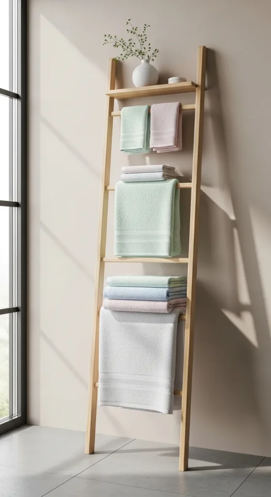 Idea 3: Ladder-Style Leaning Towel Shelf