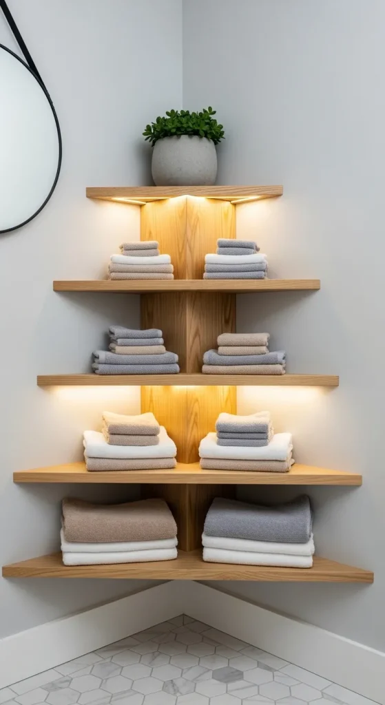 Idea 7: Corner Wall Towel Shelf Units