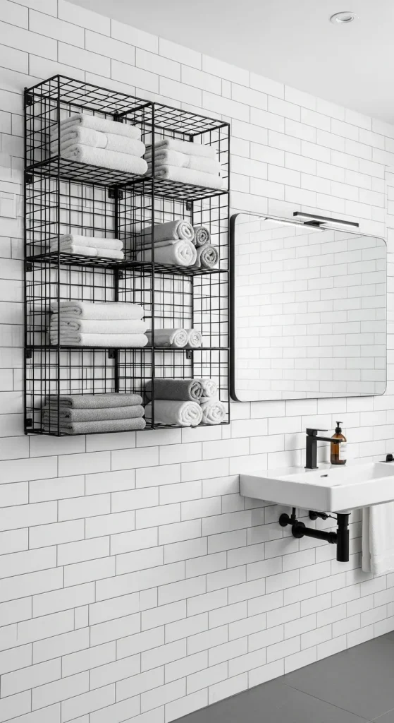 Idea 8: Open Metal Grid Towel Shelving