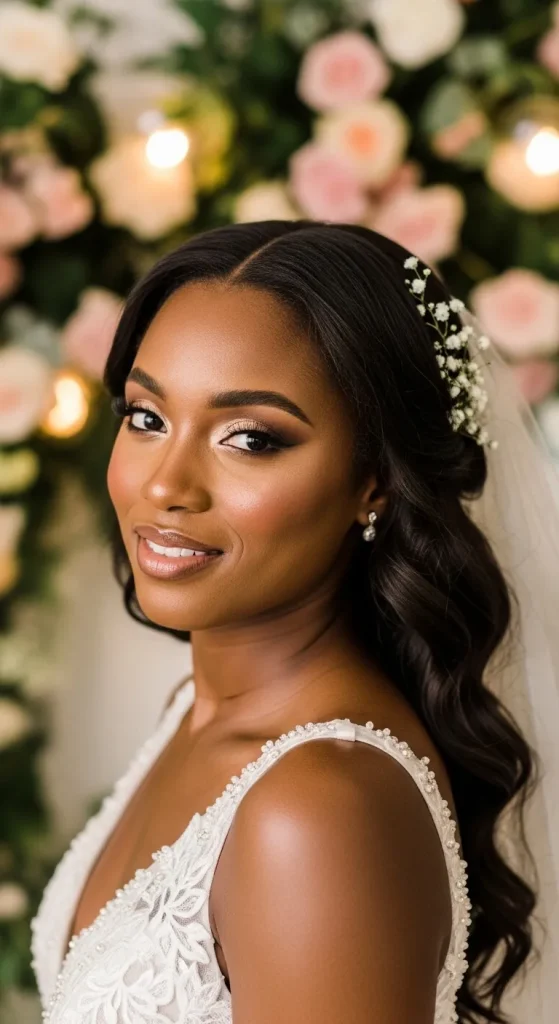 Radiant evening dewy glam focuses on enhanced glow and slightly stronger definition for night settings. This idea is common in Pinterest ideas for parties and events because it combines glamour with hydration. It enhances facial structure while maintaining luminous skin. For Black women, it creates depth and highlight contrast that looks striking under artificial lighting. The aesthetic is bold yet smooth, balancing glow and definition effectively.
