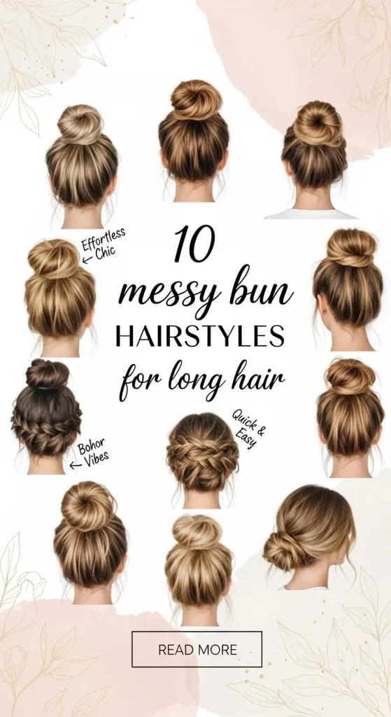 Messy bun hairstyles for long hair are among the most saved Pinterest ideas because they combine practicality with effortless style. These looks suit daily routines, casual outings, and organized home settings while maintaining a clean and aesthetic appearance.