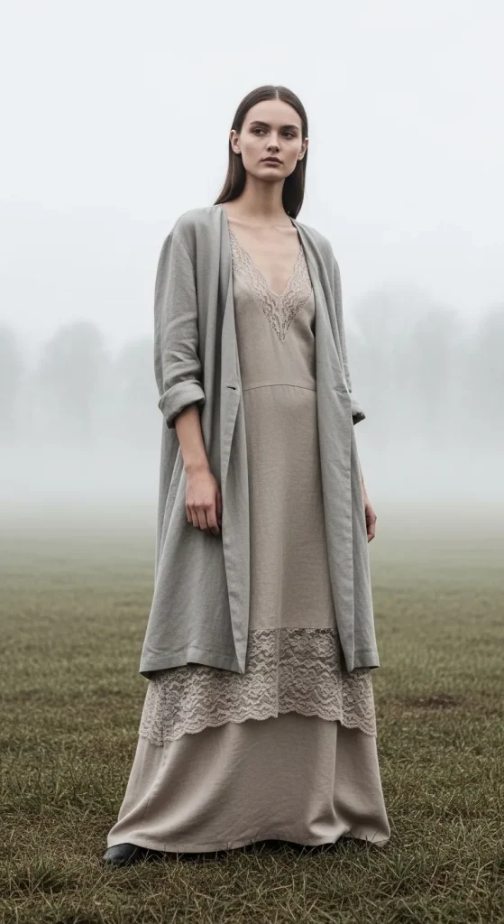 Start by selecting garments in similar tones such as beige, gray, or off-white. Combine different materials like linen, cotton, and lace to add depth. Keep accessories minimal to maintain focus on the outfit structure. This step by step execution ensures a refined look that aligns with modern design principles and aesthetic balance.